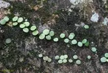 伏石蕨是水龙骨科、伏石蕨属小型附生蕨类植物。根状茎细长横走,淡绿色,疏生鳞片粗筛孔,两侧不规则分叉。叶远生,二型;叶片近球圆形或卵圆形,基部圆形或阔楔形,全缘;能育叶狭缩成舌状或狭披针形,叶脉网状,…全部>>