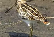 扇尾沙锥是鹬科、沙锥属鸟类,又称普通沙锥、扇尾鹬、小沙锥。体型小;喙粗长而直;上体黑褐色,具栗色和黄白色斑纹;头顶具黄白色中央冠纹,背具4条白纵带;下体白色,颈、胸淡褐色,带褐色纵纹;翼后缘白色,…全部>>