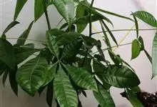 瓜栗 Walp. ),俗称发财树,木棉科小乔木,高4-5米,树冠较松散,幼枝栗褐色,无毛。小叶具短柄或近无柄。花单生枝顶叶腋;花梗粗壮,被黄色星状茸毛,脱落;萼杯状,近革质;花瓣淡黄绿色,狭披针形…全部>>