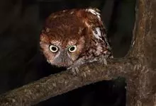 黄嘴角鸮:小型鸟类,体长18-21厘米。的茶黄褐色角鸮。眼黄色,嘴奶油色,特征为无明显的纵纹或横斑,仅肩部具一排硕大的三角形白色点斑。主要栖息于海拔2000米以下的山地常绿阔叶林和混交林中,…全部>>