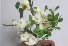 贴梗海棠Nakai)是蔷薇科、木瓜海棠属植物。落叶灌木,高达2米,枝条直立开展,有刺。叶片卵形至椭圆形,稀长椭圆形,长3-9厘米,宽1.5-5厘米。花先叶开放,3-5朵簇生于二年生老枝上。…全部>>
