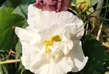 木芙蓉,锦葵科木槿属落叶灌木或小乔木。小枝上有细绒毛;叶片为卵状心形,托叶为披针形,常早落;花单生,花萼为钟形,花冠初为白色或淡红色,后逐渐变为深红色;果实为扁球形,有淡黄色的毛附着。花期8到10月。…全部>>