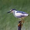 夜鹭是中型涉禽,体长46-60厘米。体较粗胖,颈较短;嘴尖细,微向下曲,黑色;胫裸出部分较少,脚和趾黄色;头顶至背黑绿色而具金属光泽;上体余部灰色;下体白色;枕部披有2-3枚长带状白色饰羽,下垂至背上,…全部>>
