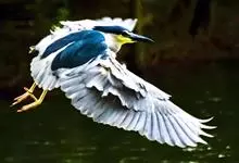 夜鹭是中型涉禽,体长46-60厘米。体较粗胖,颈较短;嘴尖细,微向下曲,黑色;胫裸出部分较少,脚和趾黄色;头顶至背黑绿色而具金属光泽;上体余部灰色;下体白色;枕部披有2-3枚长带状白色饰羽,下垂至背上,…全部>>