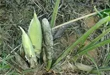 水芋多年生水生草本。根茎匍匐,圆柱形,粗壮,长可达50厘米;鳞叶披针形,渐尖。成熟茎上叶柄圆柱形,下部具鞘;鞘长7-8厘米;叶片长6-14厘米。花序柄长15-30厘米;佛焰苞外面绿色,内面白色,…全部>>