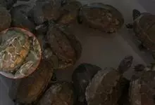 黑颈乌龟是龟鳖目淡水龟科乌龟属爬行动物;别名广东乌龟、广东草龟、黑点龟、黑颈水龟。黑颈乌龟体形较大,头较大,吻钝,略突出于上喙。头顶部黑色,侧面有黄绿色条纹;背甲黑色或棕褐色;中央有一条明显的脊棱,…全部>>