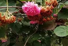 非洲芙蓉 是梧桐科,非洲芙蓉属常绿中型灌木或小乔木,高可达15米。树冠圆形,枝叶密集。树枝棕色,叶面质感粗糙,叶片互生,心形,叶缘顿锯齿,掌状脉,花从叶腋间伸出,伞形花序,冬季开花,…全部>>