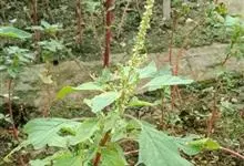 反枝苋是苋科苋属的一年生草本植物。株高达1米;茎密被柔毛;叶菱状卵形或椭圆状卵形,先端锐尖或尖凹,两面及边缘被柔毛,下面毛较密;穗状圆锥花序,顶生花穗较侧生者长;花被片长圆形或长圆状倒卵形,…全部>>