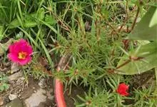 大花马齿苋:一年生草本,高10-30厘米。茎平卧或斜升,紫红色,多分枝,节上丛生毛。叶密集枝端,较下的叶不规则互生,叶片细圆柱形,无毛。花单生或数朵簇生枝端,直径2.5-4厘米,…全部>>