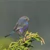 凤头雀莺:小型鸟类。体长9-10厘米,雄鸟呈毛茸茸的紫色和绛紫色,顶冠淡紫灰色,额及凤头白色,尾全蓝。雌鸟喉及上胸白,至臀部渐变成淡紫色,耳羽灰,…全部>>