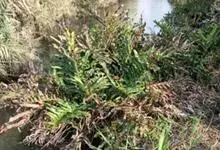 卤蕨是凤尾蕨科、卤蕨属蕨类植物,植株高可达2米。根状茎直立。叶簇生,叶柄基部褐色,被钻状披针形鳞片,羽片多,基部一对对生,长舌状披针形,叶厚革质,干后黄绿色,光滑。孢子囊满布能育羽片下面,无盖。…全部>>
