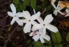 素馨花,木犀科素馨属多年生的攀援灌木植物。攀援灌木,小枝圆柱形,具棱或沟;叶对生,叶轴常具窄翼,小叶片卵形或长卵形;聚伞花序顶生或腋生,花序梗长,苞片线形,花萼无毛,裂片锥状线形,花冠白色,…全部>>