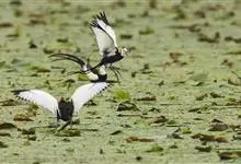 铜翅水雉雉鸻科铜翅水雉属的一种物种,是小型涉禽,体长28-31厘米。头颈、下体黑色,具金属色辉。从眼到颈有白色纵纹,背、内侧初级一飞羽橄榄铜绿色,尾下覆羽栗色。跗蹠的前后均有盾状鳞,趾、爪均甚长,…全部>>