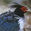 血雉雉科血雉属鸟类,别名血鸡、松花鸡,血雉的雄鸟大覆羽、尾下覆羽、尾上覆羽、脚、头侧、腊膜为红色,故称血雉。其别名甚多,各地皆异。在甘肃,因其胸侧和翅上覆羽沾绿,被称为“绿鸡”;因其羽毛形似柳叶,…全部>>