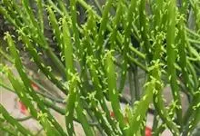 绿玉树是大戟科、大戟属植物。小乔木,高2-6米,直径10-25厘米,老时呈灰色或淡灰色,幼时绿色,上部平展或分枝;小枝肉质,具丰富乳汁。叶互生,长圆状线形,长7-15毫米,宽0.7-1.5毫米。…全部>>