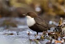 河乌是河乌科河乌属鸟类。身长17-20厘米,翼展25-30厘米,体重55-75克,雌雄体色相似,额、头顶、头侧、颈、上背暗棕褐色,肩部、腰部和尾上覆羽基部灰色,近羽端黑褐色,羽缘灰色,…全部>>
