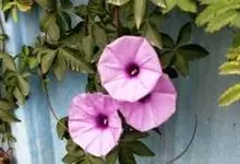 五爪金龙 Sweet),旋花科番薯属多年生缠绕草本植物。茎细长,有细棱;叶片为掌状;花冠紫红色、紫色或淡红色、偶有白色,漏斗状;蒴果近球形。花期5~12月。五爪金龙的叶子类似掌状,有5至7个裂痕,…全部>>