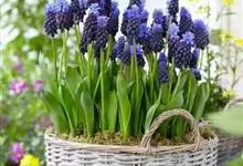 葡萄风信子,是天门冬科蓝壶花属的多年生草本优良观花地被植物,为小型花卉球根植物。根具鳞茎,卵形或近球形,株高5-10cm;基生叶半圆柱状线形;花葶不分枝,总状花序,长椭圆状柱形;花深蓝色,近球形,坛状,…全部>>