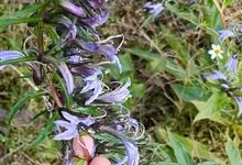 线萼山梗菜,为桔梗科多年生草本植物,叶互生,排成两行,花单生叶腋,花两性,有小苞片;花萼筒卵状,裂片等长,全缘,果期宿存;花冠两侧对称,雄蕊筒包围花柱,花药管灰蓝色,…全部>>