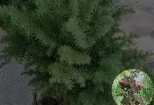 澳洲杉,常绿乔木,一般盆栽为幼树,高在2米以下。喜温暖、潮湿的环境,树冠尖塔形,深绿色。茎干直立,侧枝轮生,水平伸展。小枝二列互生,水平延伸或略下垂。叶有二型。球果近圆形。 全部>>