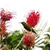火尾太阳鸟为太阳鸟科太阳鸟属的鸟类。体长20厘米,色彩艳丽。雄鸟红色,具形长的艳猩红色中央尾羽。头顶金属蓝色,眼先和头侧黑色,喉及髭纹金属紫色。下体黄色,胸具艳丽的橘黄色块斑。雌鸟灰橄榄色,腰黄,…全部>>