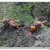 虎头蜂,又名黄脚胡蜂、黄马蜂,是膜翅目胡蜂科胡蜂属昆虫。虎头蜂前胸背板侧面具横皱,后足胫节长刚毛稀少,颅顶黑色或黄褐色,腹部第4背板端部常有1条宽黄带,腹部末端有螫针,连接着毒腺。因为头大得像老虎,…全部>>