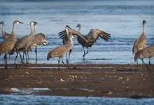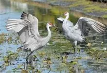 沙丘鹤别名棕鹤、加拿大鹤,是鹤形目鹤科鹤属大型涉禽。成鸟两性相似,雌鹤略小,眼先、前额和头顶裸露部分红色;上体石板灰色,翅覆羽较淡,羽缘锈棕色,羽轴深黑色;尾羽石板灰色,颈部灰蓝色,…全部>>
