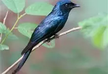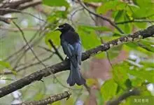 发冠卷尾是中型鸟类,体长28-35厘米。通体绒黑色缀蓝绿色金属光泽,额部具发丝状羽冠,外侧尾羽末端向上卷曲。栖息于海拔1500米以下的低山丘陵和山脚沟谷地带,多在常绿阔叶林、次生林或人工松林中活动。…全部>>