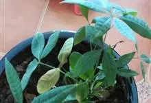 瓜栗 Walp. ),俗称发财树,木棉科小乔木,高4-5米,树冠较松散,幼枝栗褐色,无毛。小叶具短柄或近无柄。花单生枝顶叶腋;花梗粗壮,被黄色星状茸毛,脱落;萼杯状,近革质;花瓣淡黄绿色,狭披针形…全部>>