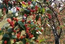 火棘 H. L. Li)是蔷薇科火棘属常绿灌木,老枝呈暗褐色;叶片呈倒卵形,边缘有钝锯齿,齿尖向内弯,两面皆无毛;叶柄短,无毛或嫩时有柔毛;花序是复伞房状,花瓣呈白色近圆形;果球近圆形,…全部>>