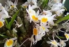玫瑰石斛是兰科石斛属的多年生附生草本植物。茎斜下或下垂,青绿色,圆柱形,节间鞘具绿或白色相间的条纹;叶窄披针形;花序短,生于已落叶的老茎上部,花序梗长,萼片和花瓣白色,上部带淡紫色,干后蜡质状,…全部>>