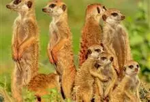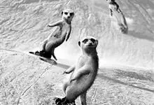 狐獴,是食肉目獴科狐獴属小型哺乳动物。狐獴的眼睛周围有黑色块,新月型的耳朵,修长的躯干和四肢,有着有力、弯曲的爪子,尾巴长细并尖尖延伸到端点,在末端的端点都为黑色。直立时狐獴会用尾巴支撑来保持平衡。…全部>>