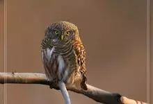 斑头鸺鹠是鸮形目鸱鸮科鸺鹠属动物。斑头鸺鹠体长约24厘米,无耳羽族,体色为棕褐色并具浅色横纹;颏纹白色,肩部具1道白色斜纹,腹部白色具棕褐色纵纹;虹膜黄褐色;嘴黄绿色,端部黄色;脚黄绿色,䟮跖被羽。…全部>>