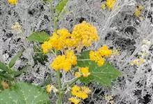 银叶菊,是菊科疆千里光属多年生草本植物。银叶菊的茎灰白色,植株多分枝;叶回羽状裂,正反面均被银白色柔毛;头状花序集成伞房花序,舌状花小,金黄色,管状花褐黄色;花期为6-9月。银叶菊原产于地中海沿岸地区,…全部>>
