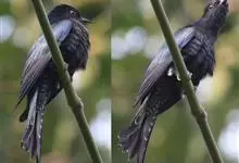 斑翅凤头鹃: 成鸟具羽冠,上体及头侧、翅、尾等黑色,具铁绿色亮辉,尾羽端部具白斑,两侧者形宽,中央者较狭;下体白色、淡灰白或略带棕黄色。虹膜褐至红褐色;嘴黑色;脚灰蓝黑色。…全部>>