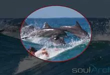 真海豚,身体细而流线型。体色十分复杂而独特,通常十字交叉型,黄褐色在前灰色在后,背面黑色向下延伸,在背鳍下面形成V形区域。具白色胸斑。头前额喙平缓向倾斜,喙细长,相对较短。黑唇末端白色。背鳍大,…全部>>