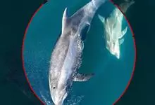 虎鲸,是鲸偶蹄目海豚科虎鲸属哺乳动物。成体体重6600千克,平均体长6-9米;头部略圆,…全部>>
