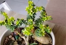 小松绿是景天科景天属植物,多肉植物,植株低矮,多分枝,株型近似球状,新枝浅绿色,以后逐渐转为灰白色,肉质叶近似针状。枝条下部的老叶容易干枯,贴在枝干上,形成类似松树皮般的龟裂,数月才脱落,…全部>>