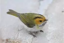 棕脸鹟莺:体长10厘米,是一种色彩亮丽而有特色的莺鸟。头栗色,具黑色侧冠纹。上体绿,腰黄色。下体白,颏及喉杂黑色点斑,上胸沾黄。与栗头鹟莺的区别在头侧栗色,白色眼圈不显著且无翼斑。…全部>>