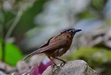 棕头雀鹛为鸦雀科,褐鹛属小型鸟类,体长10-13厘米。头顶栗褐色具黑色侧冠纹。上体茶黄色,飞羽外侧表面灰白色,内侧表面红棕色,内外二色之间夹有黑色。颏、喉白色具不明显的暗色纵纹,胸沾葡萄灰色,…全部>>
