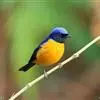 棕腹大仙鹟:体重24-28克,体长15-17厘米,是一种小型的色彩亮丽的鹟。雄鸟上体深蓝,下体棕色,脸黑,额、颈侧小块斑、翼角及腰部亮丽闪辉蓝色。与棕腹仙鹟易混淆,区别在色彩较暗。雌鸟灰褐,…全部>>