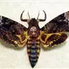 鬼脸天蛾,是鳞翅目天蛾科面形天蛾属动物。成虫翅展100~125毫米,体黑褐色;胸背有骷髅形斑纹;卵圆球形,直径约2毫米,淡黄绿色,表面光滑;老熟幼虫体长70~90毫米,蛹体长约56毫米;前翅为褐色,…全部>>