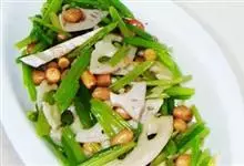 西芹花生米是用西芹、熟花生米并加以各种辅料制作成的凉菜,其特点既青翠可人,又脆口爽人。全部>>