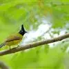 黑冠黄鹎:体长18-21厘米,是一种中等体型偏黄色鹎。整个头、颈、颏、喉黑色,头顶有显著直立的羽冠,黑色,上体褐橄榄黄绿色,下体橄榄黄色。虹膜偏红;嘴及脚黑色。…全部>>
