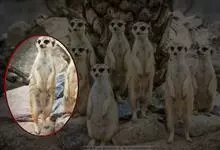 狐獴,是食肉目獴科狐獴属小型哺乳动物。狐獴的眼睛周围有黑色块,新月型的耳朵,修长的躯干和四肢,有着有力、弯曲的爪子,尾巴长细并尖尖延伸到端点,在末端的端点都为黑色。直立时狐獴会用尾巴支撑来保持平衡。…全部>>