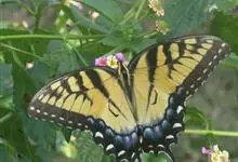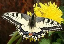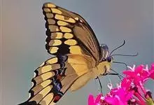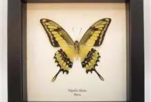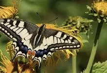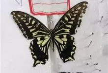 金凤蝶,是鳞翅目凤蝶科凤蝶属动物。金凤蝶为中型凤蝶,翅展70-84毫米,翅背面底色黑褐色,翅脉黑色,翅室具黄斑;前翅背面基部呈暗黄色,亚外缘为黑色,内具一列小黄斑;后翅背面亚外缘区具黑宽边,…全部>>