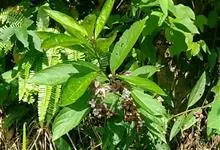 赪桐 Sweet)是唇形科、大青属灌木,高1-4米,叶片圆心形,顶端尖或渐尖,基部心形,边缘有疏短尖齿,表面疏生伏毛,二歧聚伞花序组成顶生,大而开展的圆锥花序,花序的最后侧枝呈总状花序,花萼红色,…全部>>