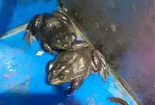 牛蛙,是蛙科、牛蛙属的养殖水产品动物,鸣声很大,远闻如牛叫而得名。牛蛙个体硕大,雌蛙体长达20厘米,雄蛙18厘米,最大个体可达2千克以上。头部宽扁,口端位,吻端尖圆面钝眼球外突,分上下两部分,…全部>>