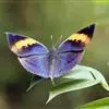 枯叶蛱蝶,又名木叶蝶、树叶蝶等,属于蛱蝶科。翅正面黑褐色,具深蓝色光泽,前翅顶角尖出,顶区有1枚小白点,中部有1条倾斜的橙色斑带,从前缘延伸至Cu室外缘,u室中部有1枚黑色圆斑,…全部>>