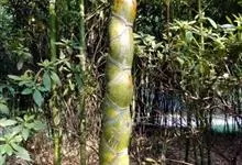 龟甲竹 Mitford),竿高达20余米,粗者可达20余厘米,幼竿密被细柔毛及厚白粉,箨环有毛,老竿无毛,并由绿色渐变为绿黄色;基部节间甚短而向上则逐节较长;竿环不明显,低于箨环或在细竿中隆起。…全部>>